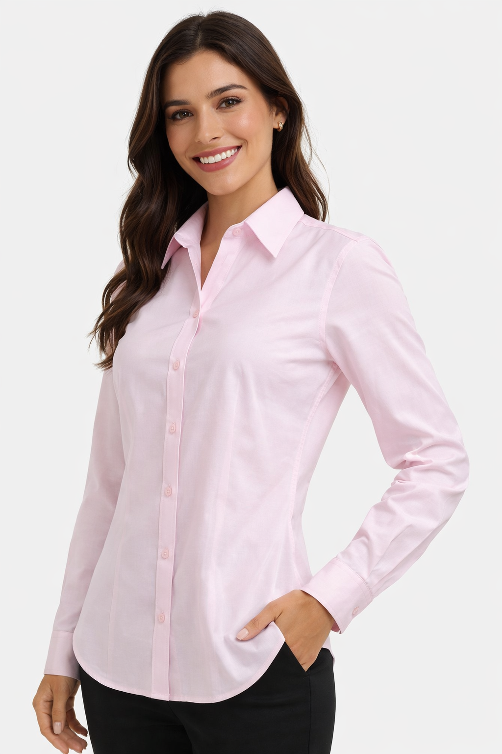 Blusa oxford, cuello en V.