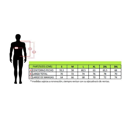 cortes en pecho y espalda que facilitan la ventilación.